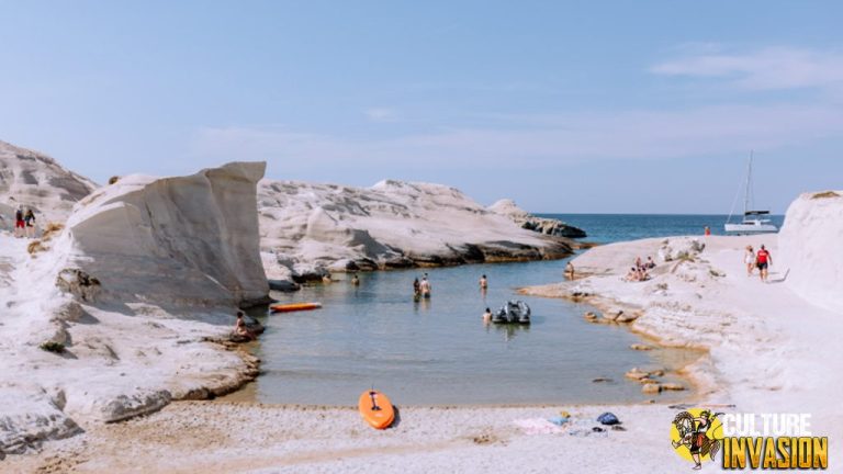 Pantai Livadia di Tilos menawarkan pemandangan indah, pasir lembut, dan suasana tenang, cocok untuk bersantai dan menikmati keindahan alam laut Aegean.