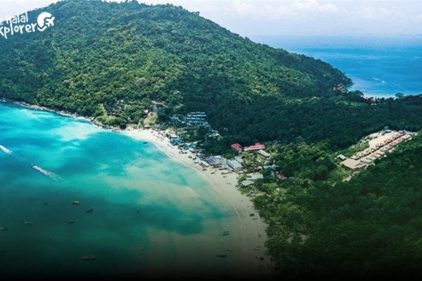Pantai Pulau Perhentian Kecil menawarkan pasir putih bersih dan air jernih, ideal untuk snorkeling, menyuguhkan keindahan alam tropis yang menenangkan dan menawan.