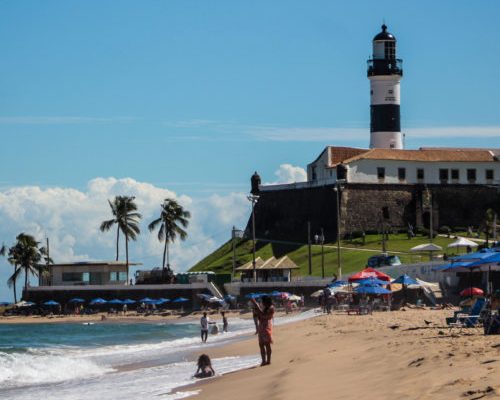 Pantai Praia Farol da Barra di Salvador menawarkan pemandangan indah, pasir putih bersih, dan suasana tenang yang sempurna untuk bersantai dan menikmati keindahan alam.