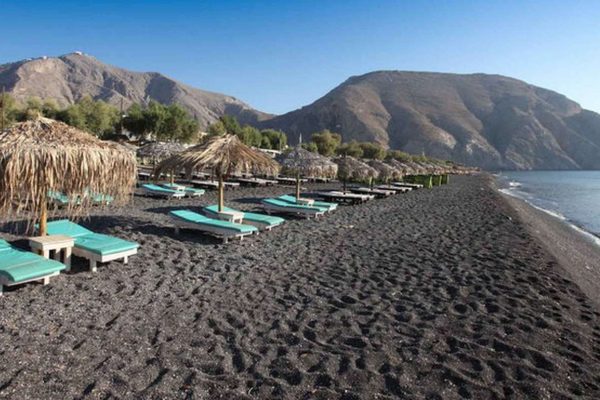 Pantai Perissa di Santorini terkenal dengan pasir hitam vulkaniknya yang unik, menawarkan pemandangan menakjubkan dan suasana tenang untuk pengalaman liburan yang berbeda.