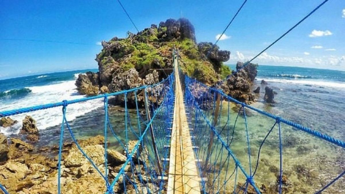 Panorama Laut Biru dan Karang Indah di Pantai Nglambor