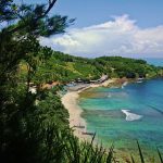 Panorama Laut Biru dan Karang Indah di Pantai Nglambor