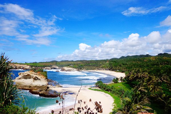 Pantai Klayar di Pacitan menawarkan keindahan alam memukau dengan pasir putih, formasi batu unik, dan suara ombak yang menenangkan, cocok untuk wisata alam yang menenangkan.