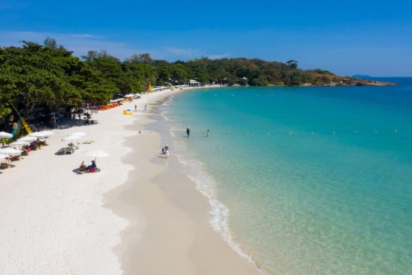 Pantai Koh Larn, pulau indah di Thailand, menawarkan pasir putih bersih dan air jernih yang ideal untuk berenang, snorkel, dan menikmati keindahan alam tropisnya.